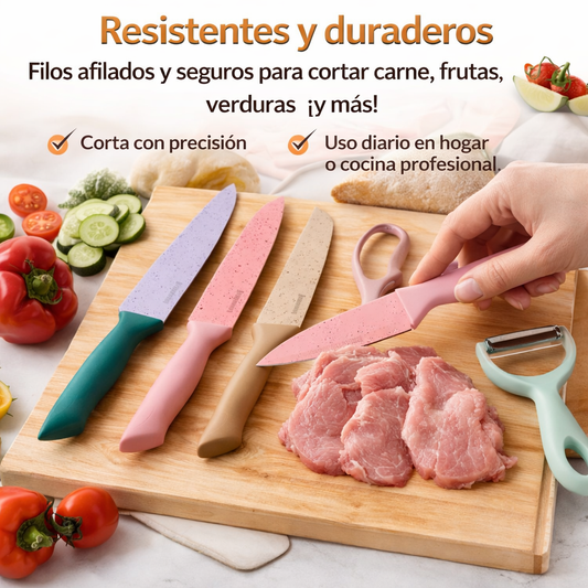 "Set de Cuchillos de Colores 6 Unidades: Estilo y Funcionalidad para tu Cocina"