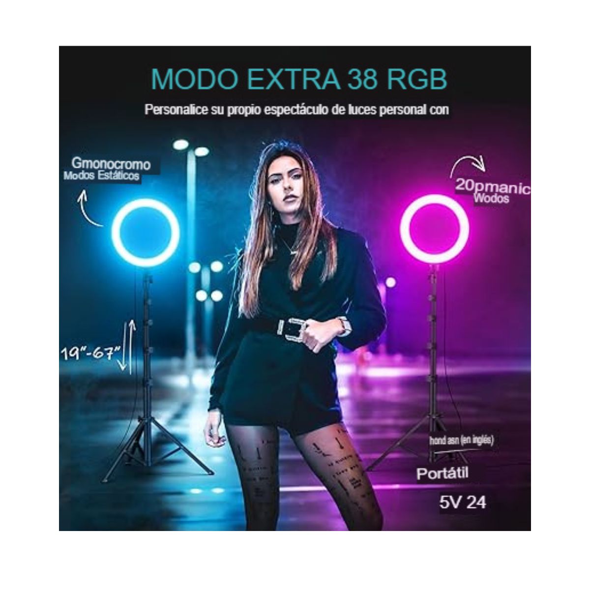 Domina la iluminación profesional con este anillo LED RGB diseñado para fotógrafos y creadores de contenido. Ofrece control total sobre color y brillo mediante tecnología RGB ajustable, permitiéndote pasar de tonos cálidos a paletas vibrantes según cada proyecto. La intensidad variable se adapta desde iluminación suave para retratos hasta potencia máxima para fotografía de producto, eliminando sombras indeseadas. Montaje universal compatible con cualquier trípode o soporte, con control remoto inalámbrico para ajustes sin interrupciones. Transforma cualquier espacio en un estudio profesional con precisión y versatilidad.