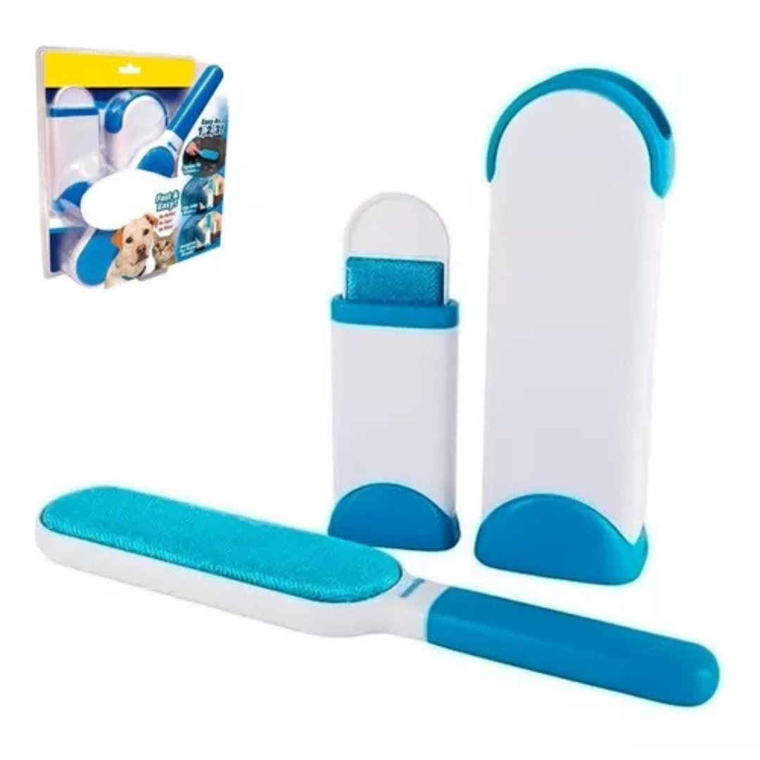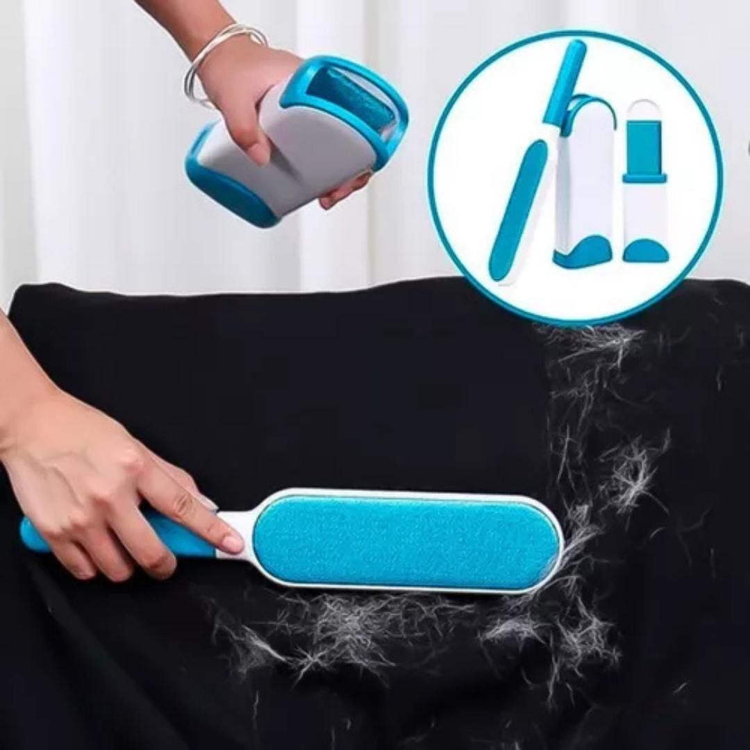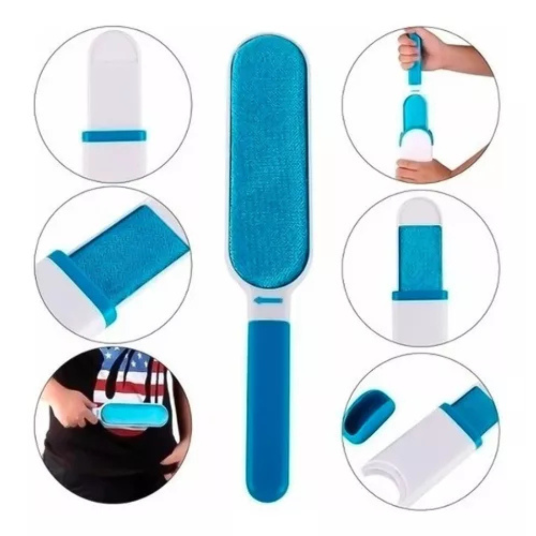 Herramienta versátil de limpieza diseñada para eliminar pelos, pelusas y polvo de múltiples superficies. Su estructura de doble cara con cerdas de poliéster de alta densidad captura partículas de manera eficiente en camas, sofás, tejidos y pelaje de mascotas. Fabricado en ABS resistente, combina durabilidad con un diseño moderno y funcional. Ideal para hogares con mascotas que buscan una solución práctica y de larga duración para mantener espacios y textiles impecables.