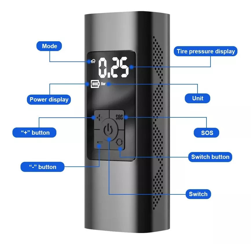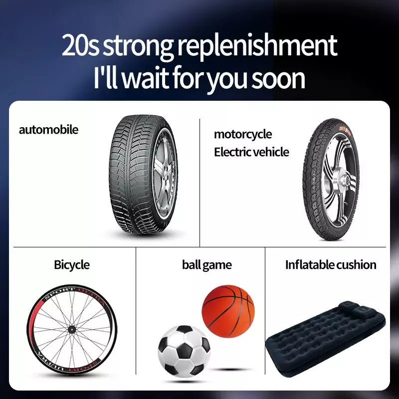 Infla todo lo que necesites con esta bomba de aire portátil a batería. Viene equipada con múltiples boquillas para autos, motos, bicicletas, scooters, sillas de ruedas y pelotas deportivas. Su pantalla LCD inteligente te permite establecer la presión deseada y se detiene automáticamente al alcanzarla, evitando sobrecarga. Con capacidad de hasta 150 PSI y batería recargable, es tu compañero perfecto para cualquier aventura. Funcional, práctico y listo para cualquier desafío de inflado.