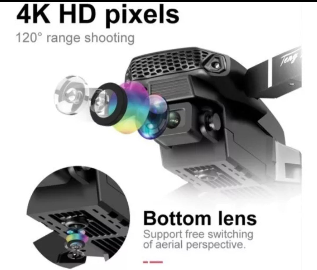 Dron E88 con Cámara Frontal, Bolso, Batería y Accesorios El Dron E88 es la opción ideal para quienes desean iniciarse en la aerofotografía sin complejidad. Este modelo compacto integra una cámara frontal de transmisión en tiempo real, permitiéndote capturar imágenes y videos aéreos directamente desde tu dispositivo móvil mediante la aplicación HF UFO compatible con iOS y Android. Especificaciones Técnicas: Modelo E88 en color negro con diseño plegable (12.5 x 8 cm comprimido, 25 x 20 cm extendido). Batería de litio 600mAh/3.7V proporciona hasta 15 minutos de vuelo autónomo con alcance de control de 100 metros. Peso aproximado de 400 gramos. Funcionalidades Destacadas: Despegue y aterrizaje automático con un botón, modo sin cabeza para manejo intuitivo, y transmisión en vivo de video. El paquete incluye batería, cable USB, protector de hélices, dos hélices de repuesto, destornillador, bolso de transporte y control remoto (requiere 3 pilas AA). Perfecto para principiantes, educadores y como regalo para jóvenes interesados en tecnología de drones. Manual con código QR facilita la descarga rápida de la aplicación.