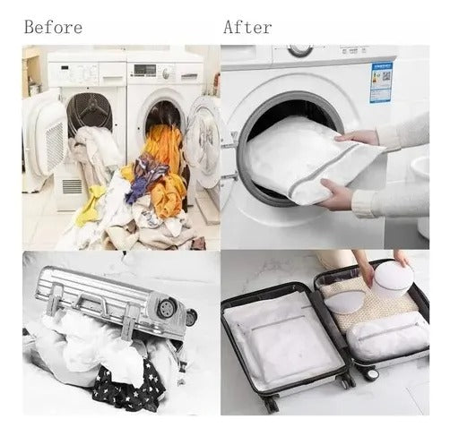 Proteja sus prendas delicadas con este juego de 7 bolsas de malla ultraresistente, diseñadas para mantener su ropa segura durante el lavado y almacenamiento. Cada bolsa cuenta con cierre antideslizante que evita aperturas accidentales en la lavadora, mientras que la malla permite una limpieza efectiva sin comprometer la protección. Los múltiples tamaños incluidos se adaptan a ropa interior, blusas, medias y calzado. Reutilizables y fáciles de limpiar, estas bolsas también funcionan para organizar maletas, closets y espacios de almacenamiento. Reduzca el desgaste de sus prendas, minimice la pérdida de artículos y optimice su rutina de lavado con una solución práctica y sostenible.