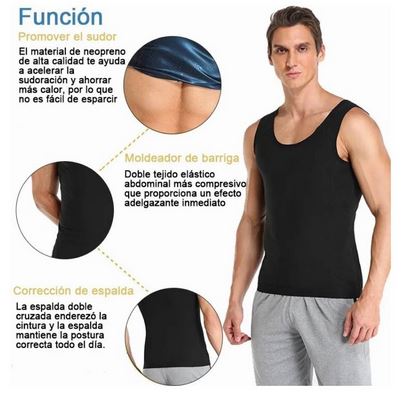 Faja térmica reductora para hombres diseñada para moldear y comprimir la zona abdominal durante actividades cotidianas y entrenamientos. Su tecnología de polímero especial retiene el calor corporal, estimulando la transpiración y acelerando la movilización de grasas en el abdomen y cintura. Proporciona soporte lumbar inmediato y compresión abdominal efectiva mientras mantiene tu cuerpo caliente en la zona central. Discreto bajo la ropa, es ideal para uso diario, ejercicio en gimnasio y deportes. Fabricado con telas que secan rápidamente el sudor, maximizando resultados sin comprometer la comodidad. Incluye: 1 faja térmica mol