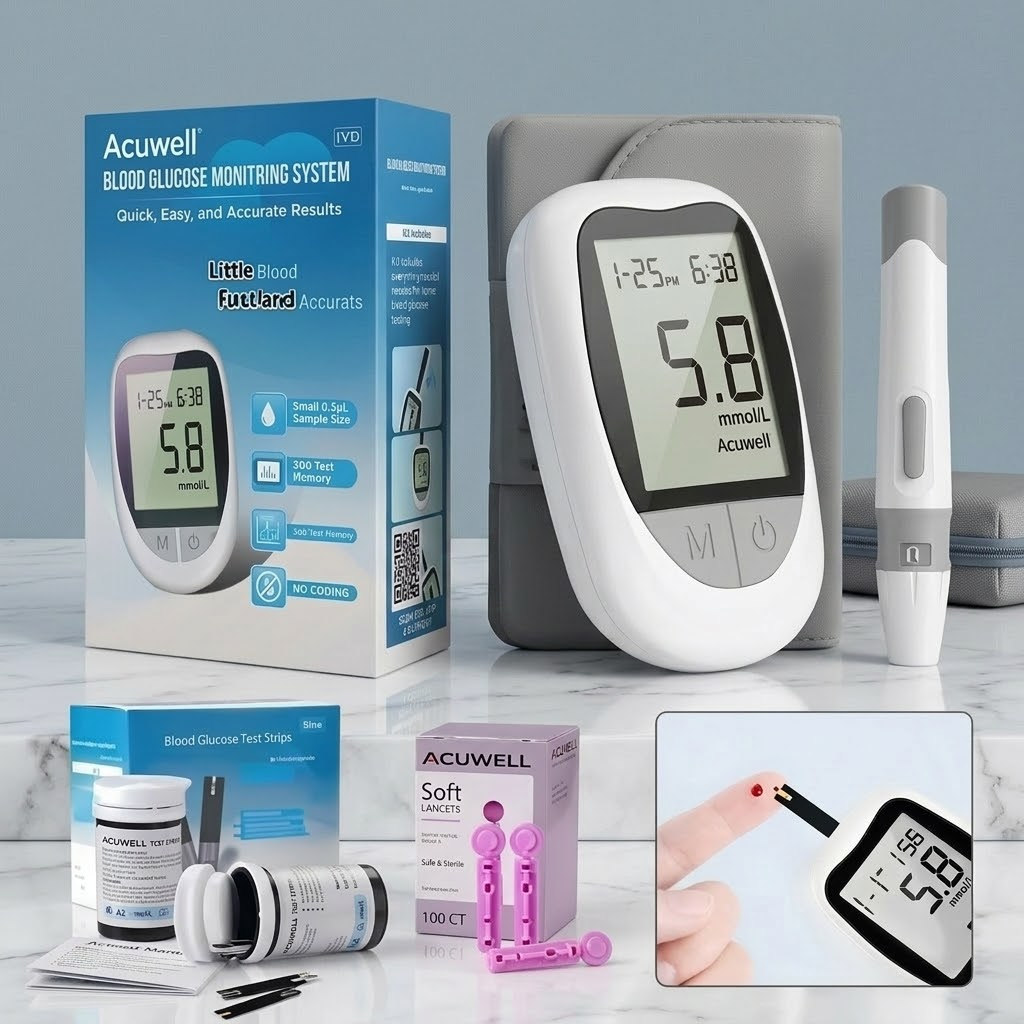 📊 Mantén tu azúcar en sangre bajo control con nuestro Glucómetro Digital con Accesorios. Kit completo con medidor, tiras reactivas, lancetero y estuche, fácil de usar, portátil y preciso.
