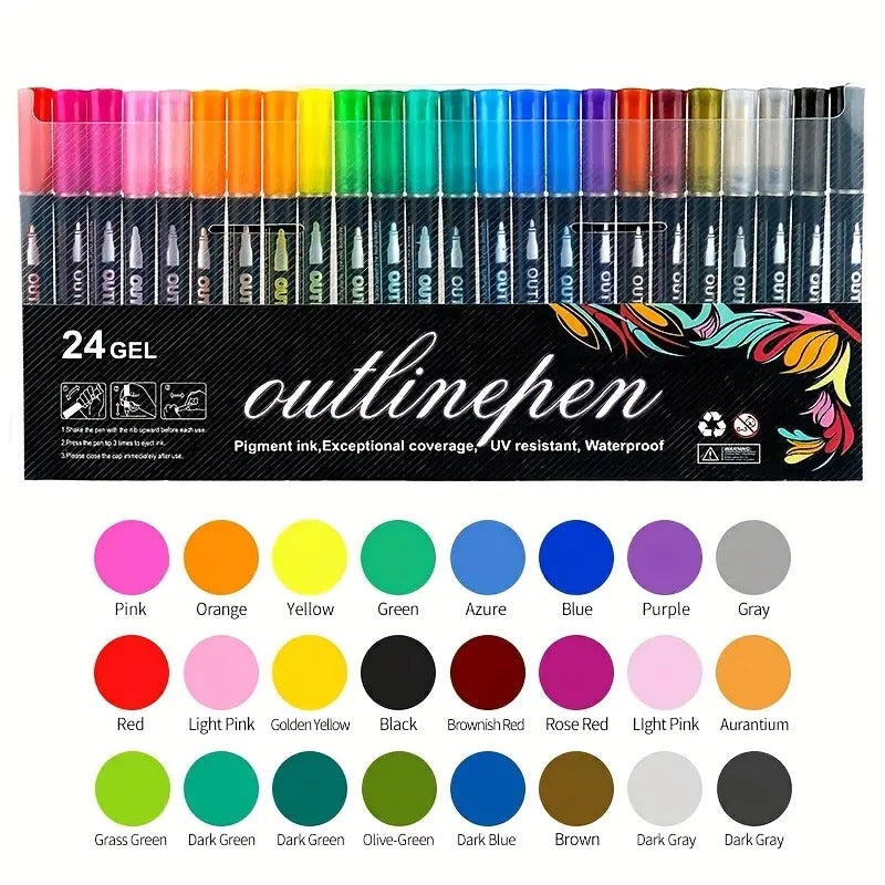 Marcadores Plumón Mágico Doble Línea Metalizados Outline Estos increíbles rotuladores auto delineados escriben en plata metálica viva rodeada de bordes de colores. Produce contornos para que puedas crear automáticamente un hermoso efecto de doble color. Multiusos: tarjeta de felicitación, diario, garabatos, garabatos, planificación, creación de carteles, dibujo, resaltado, etc. Escritura suave con punta de fibra duradera, elegantes clips transparentes. Instrucciones de uso:1: Agite el barril con la punta hacia arriba cada vez que lo use2: La tinta sale después de 3 veces la punta de presión continua sobre el papel3: recapitule inmediatamente después de su uso para evitar la volatilización4: sugiera escribir en papel con 80 g / m2 arriba, de lo contrario, se producirá un ligero tachado.5: La tinta es adecuada para usar en papeles de cartón de color claro