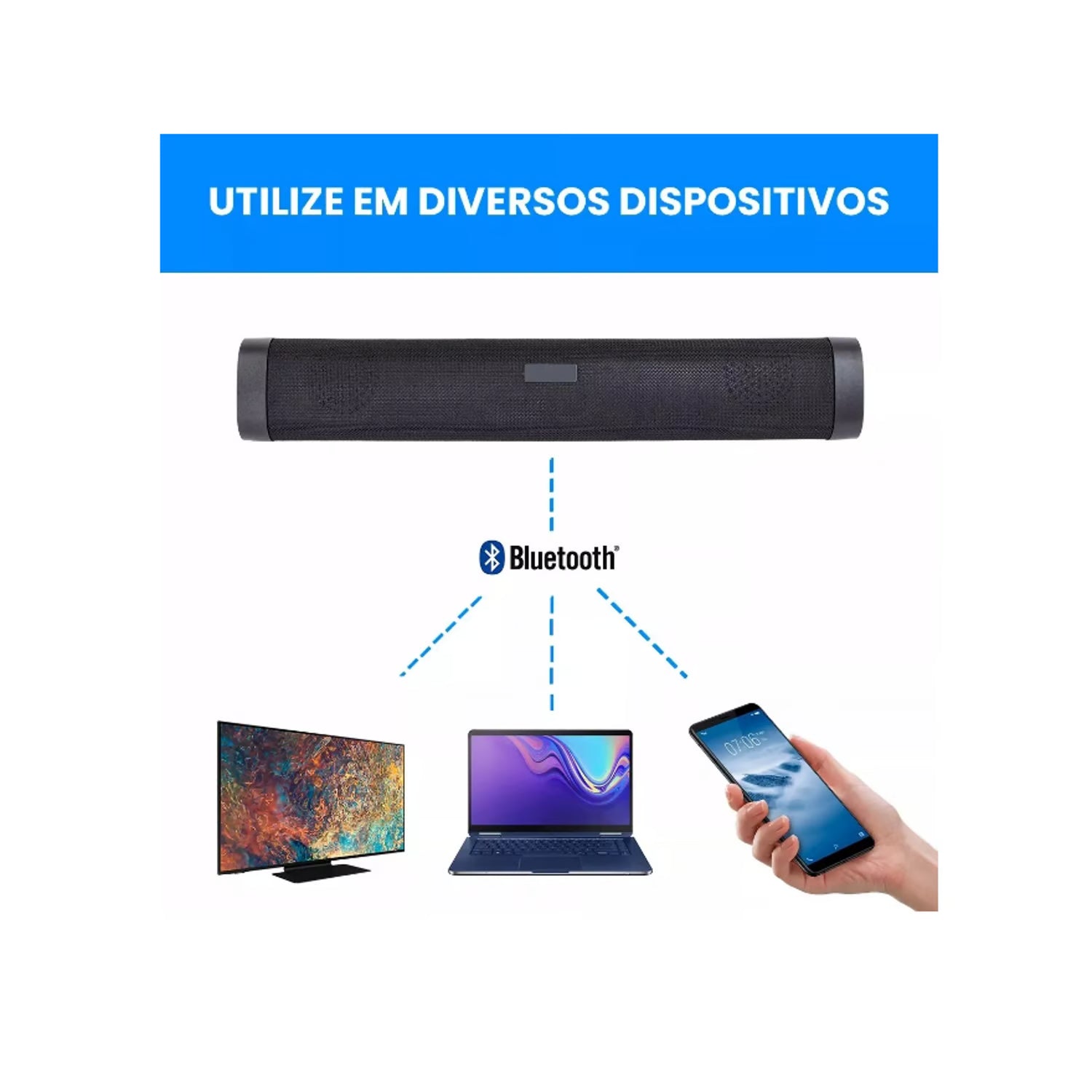 Parlante Bluetooth portátil con conectividad inalámbrica y múltiples opciones de reproducción. Diseñado con dimensiones compactas (42 x 7 x 7 cm) para fácil transporte. Ofrece sonido estéreo de calidad y carga rápida con batería recargable. Compatible con Bluetooth, radio FM, MP3 vía USB, tarjeta TF y entrada auxiliar. Incluye cable de cargador. Construcción en PVC resistente con garantía de 3 meses del proveedor. Ideal para entretenimiento en el hogar o desplazamientos.