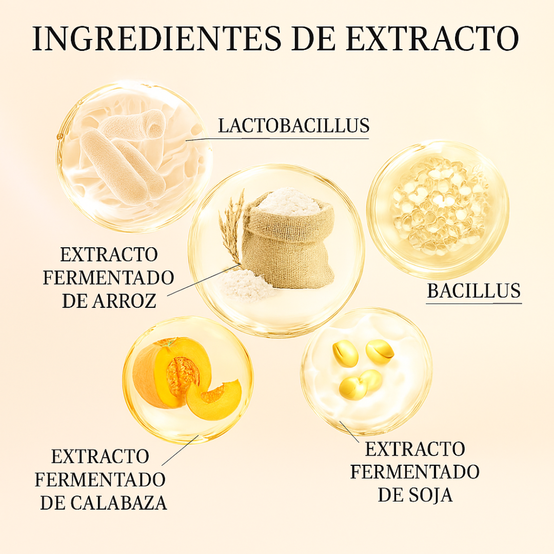 - Extracto de arroz: Rico en antioxidantes, nutre e ilumina la piel