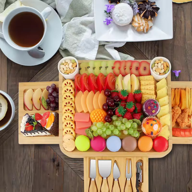 Set 2 Tabla Para Quesos De Madera Bambú como una fiesta profesional - deslumbra a sus invitados con nuestro traje de comida cocinada. Nos enfocamos en tableros de queso con muchas funciones útiles para hacer que El entretenimiento sea divertido y fácil. Nuestro Plato es perfecto en tamaño y muestra una variedad de deliciosos platos, que incluyen carne, queso de todas las texturas, galletas, verduras, frutas, gelatina y mermelada, salsa, etc. Bienvenido a los invitados con nuestra hermosa placa de queso de madera, llena de coloridos y deliciosos platos.