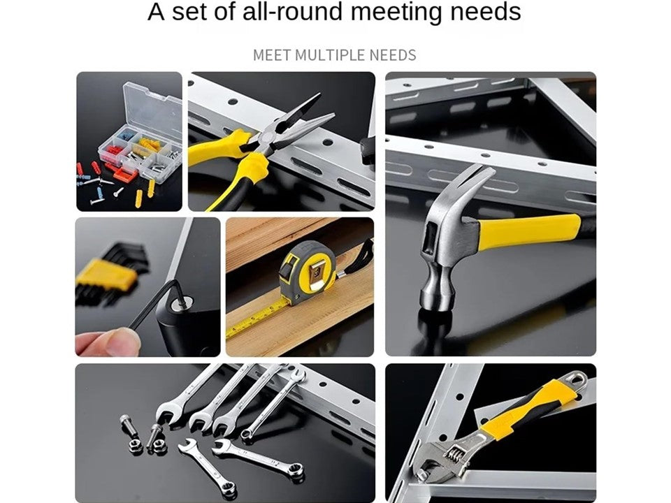 Completo set de 88 herramientas esenciales diseñado para abordar reparaciones domésticas cotidianas con eficiencia. Incluye destornilladores de múltiples puntas (ranurado y cruzado), martillo, cinta métrica y accesorios complementarios que cubren desde ajustes de muebles hasta instalación de cuadros. Cada herramienta cuenta con mangos ergonómicos antideslizantes que garantizan control y precisión en trabajos de atornillado, martillado y ensamblaje. La maleta de transporte integrada organiza y protege todas las piezas, permitiendo acceso rápido y portabilidad para resolver problemas en cualquier espacio. Solución práctica y compacta para mantener tu hogar y oficina en óptimas condiciones.