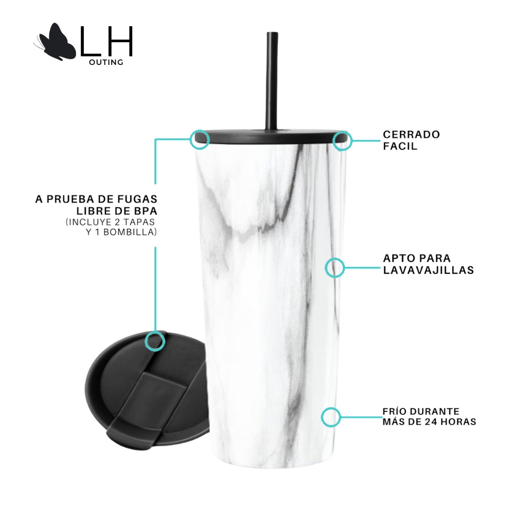 Vaso Térmico 700ml + 2 Tapas Marmoleado