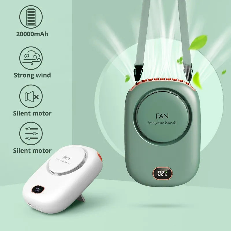 Ventilador recargable colgante diseñado para mantener la comodidad térmica en movimiento. Su batería de larga duración permite horas de funcionamiento continuo sin necesidad de cables o pilas desechables. Cuenta con múltiples velocidades ajustables para adaptar el flujo de aire según tus necesidades, desde una brisa suave hasta una potencia máxima. El diseño manos libres permite colgarlo y liberar tus manos para otras actividades. Compacto y portátil, se integra fácilmente en bolsos o mochilas. Operación silenciosa que no interfiere con tu concentración. Ideal para oficinas, actividades al aire libre, viajes o espacios cerrados donde necesites regulación térmica sin distracciones.